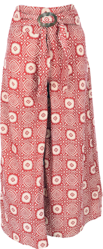 Locker fallende Sommerhose mit breitem elastischen Bund und weiten Beinen. Der großzügig geschnittene Stoff schwingt bei jedem Schritt mit und schmeichelt der Figur. An heißen Tagen kühlt das nachhaltige Material. Der weiche Stoff ist traditionell von Hand bedruckt. Das Gürtelband mit der Schnalle aus Kokosnuss ist ein stylisches Schmuckstück.