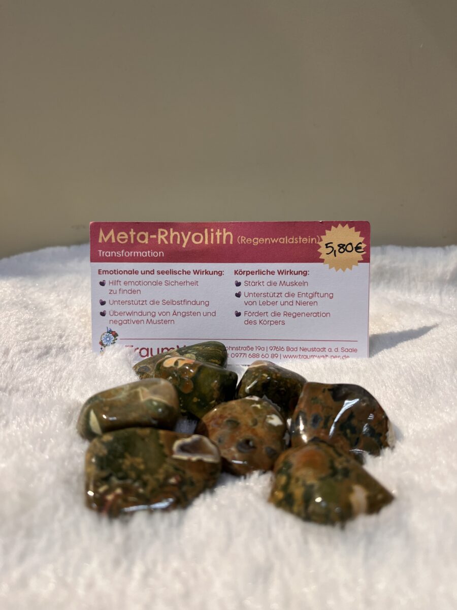 Der Meta-Rhyolith begleitet dich auf deinem Weg zu innerer Stärke und Klarheit. Er hilft dir, emotionale Sicherheit zu finden, unterstützt dich bei der Selbstfindung und löst alte Ängste sowie negative Muster.